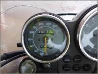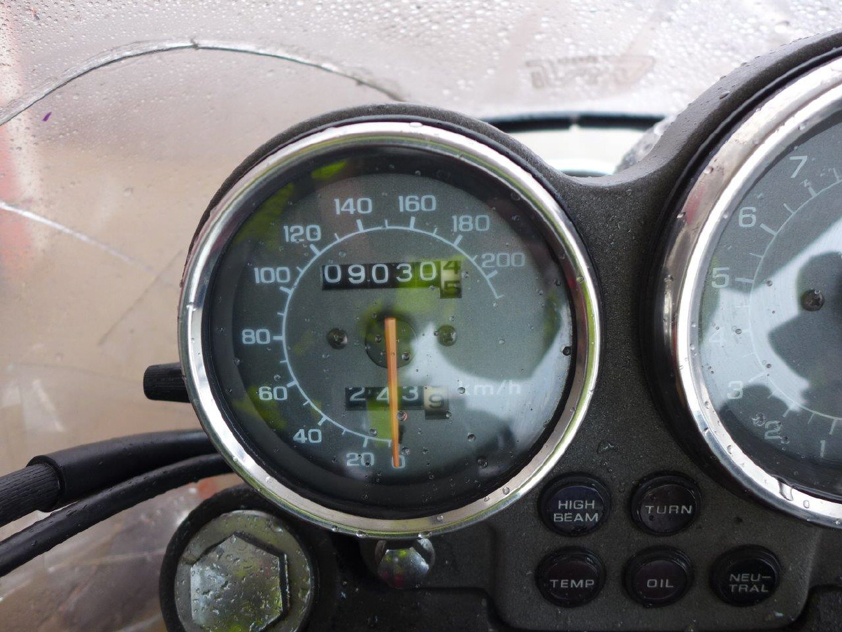 Dass es gar nicht mehr gereicht hat und Benzin organisieren musste, passierte mir mehrmals – zum letzten Mal auch mit dieser Maschine: Ich hatte vergessen, den Reservehahn zurückzustellen und es war durch das schnelle Fahren etwa um 40 Kilometer früher als erwartet passiert … Das krasseste Erlebnis diesbezüglich passierte in Deutschland auf dem Weg zur Nordschleife, wo wir auf einem Autobahnparkplatz mit dem Plastikdeckel der Rasierschaum-Dose das Benzin abgezapft und eingefüllt hatten, das natürlich auch mit einer fremden Maschine. |