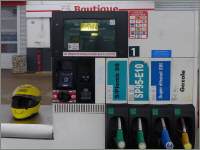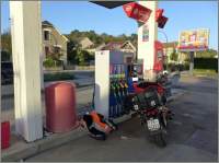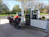Ein historischer Tankhalt: Vier Mal in meinem Leben bin ich buchstäblich «auf dem letzten Tropfen» mit stotterndem Motor an die Tankstelle gerollt, zwei Mal mit der alten GoldWing (Mollis, Glattzentrum), ein Mal mit der neuen GoldWing in Hedingen rtg. Affoltern und nun mit dieser Maschine hier. Zu meiner Entschuldigung, hier wusste ich natürlich nicht, wie lange die Reserve