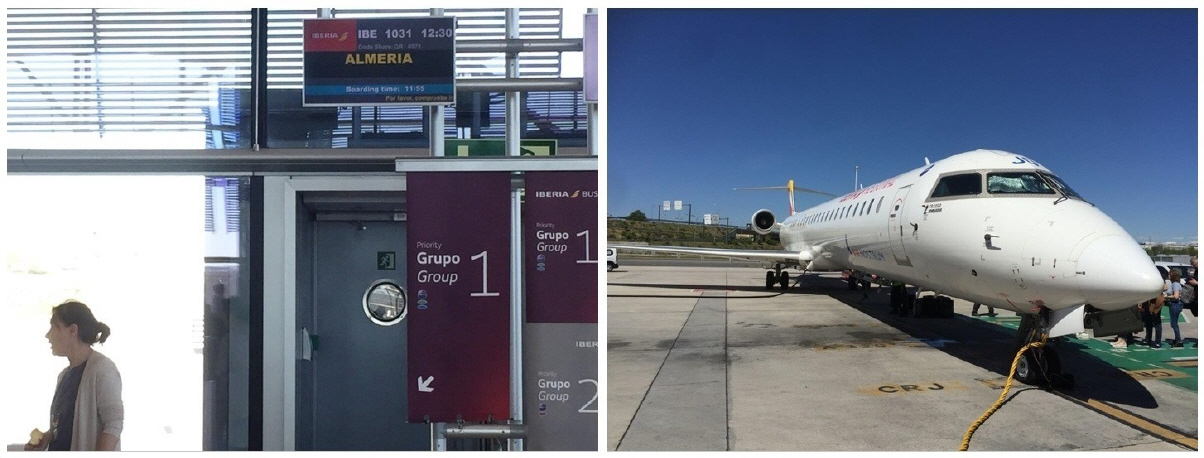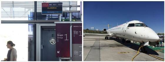 Der Flug nach Madrid verlief nach Plan, die Viertelstunde, die wir später abflogen, konnten aufgrund der Windverhältnisse leicht wieder aufgeholt werden. Diesmal hatte ich Glück, war doch die Ankunft wie auch der Abflug im gleichen Terminal angesiedelt, ich musste etwa eineinhalb Stunden überbrücken. Ich hatte den zweitgünstigsten Flug gewählt, was mir zugutekam: Was niemand wissen konnte, war ein totaler Elektrizitätsausfall und Internetausfall um 12 Uhr 30 auf der ganzen iberischen Halbinsel bis in den Süden Frankreichs. Da war ich bereits auf dem Flug nach Almeria, welcher für mich etwas sonderbar anmutete: Wie in alten Zeiten war die Passagiertüre hinter dem Cockpit nach unten geklappt und das Flugzeug musste über eine Leiter-ähnliche Treppe vom Rollfeld erklettert werden. Grosse Gepäckstücke wurden den Passagieren abgenommen und fortwährend in den «Bauch» unterhalb der Kabine hineingeschoben. Der Flug wurde im Namen der Iberia von einer lokalen Fluggesellschaft «Air Nostrum» ausgerichtet. Genauso erfolgte der Ausstieg in Almeria, wo wir über das Rollfeld zum Terminalgebäude liefen – es scheint ein sehr lokaler Flughafen zu sein. |