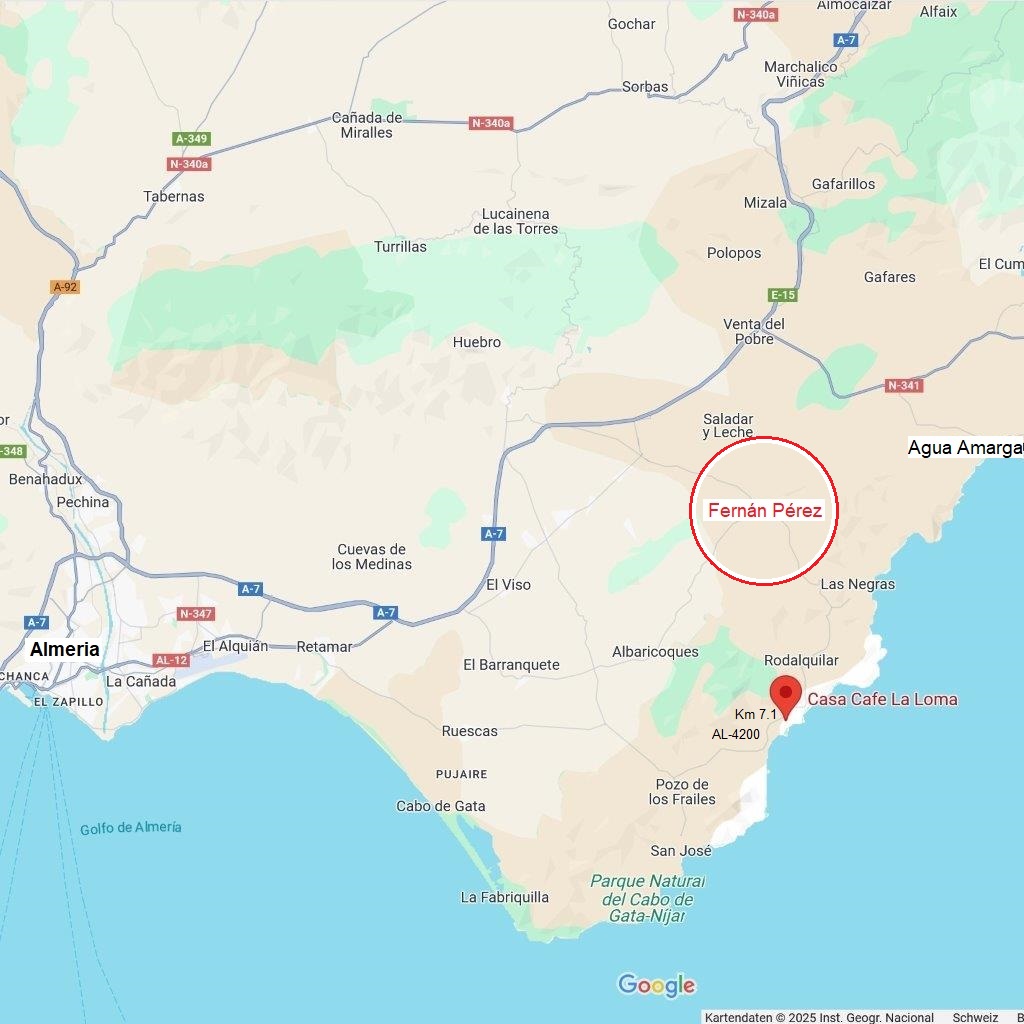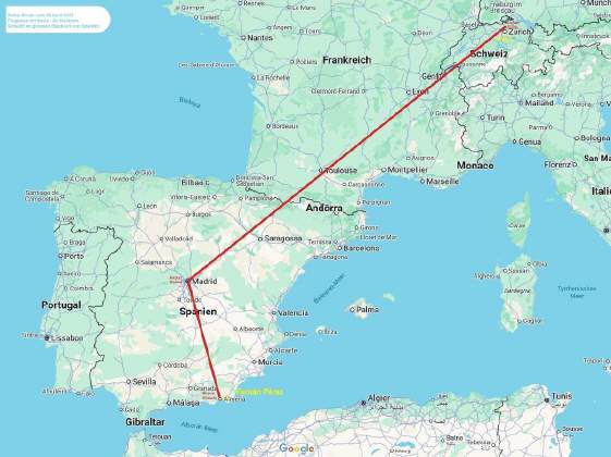 Da ich als Schulbusfahrer arbeite, musste die Rückholaktion bis zu den Frühlingsferien warten. Ich suchte erst einen Reisekollegen, der mit mir auf die Schnelle nach Almeria gefahren wäre, entweder auf Achse oder via Fähre Genua-Barcelona – Hinfahrt auf einer, Rückfahrt auf zwei Maschinen. Leider aber fand ich niemanden, der so spontan zusagen konnte und so buchte ich einen Flug nach Almeria, unweit von Fernán Pérez – im Gegensatz zu Malaga. Die Buchungsplattform gab eine öV-Hilfe, nur diese klappte gar nicht. Dank vielen hilfreichen Personen traf ich zwar rund eine Stunde später am Ziel ein, auch etwas teurer: Doch der Flug war wirklich günstig, am Blackout kam ich knapp vorbei! |