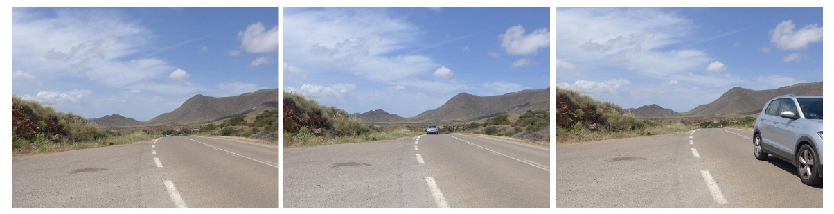 Um die Situation zu begreifen, wartete ich am Strassenrand, um herannahende Fahrzeuge zu fotografieren. Von der Stelle des Unfalls aus, begann ich die Sekunden zu zählen, zwischen dem Erscheinen an der Geländekuppe und dem Passieren der Unfallstelle. War ein Wagen zügig unterwegs, wahrscheinlich deutlich über dem signalisierten Tempo, kam ich auf 4-5 Sekunden. Hielten sie die Geschwindigkeitsbeschränkung ein, waren es zwischen 7 und 8 Sekunden. Jedes dieser Fahrzeuge hätte problemlos auf Sicht anhalten können.
