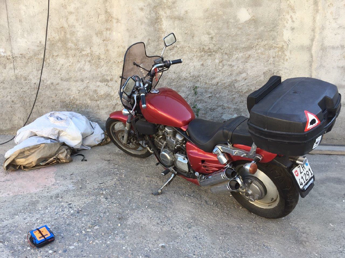 Seit 35 Jahren fährt sie ihre Honda Custom und hat damit rund 100'000 km zurückgelegt. Sie definiert die Maschine als ein Teil von ihr. Sie fragte mich frühzeitig, ob ich ihr die Maschine (auf ihre Kosten) nach Spanien bringen könne. Wer mich kennt, weiss, dass es dafür keine grosse Überzeugungsarbeit gebraucht hat. Zumal ich diesen V4-Motor von Honda als eines der genialsten Triebwerke bezeichne: Cruisen wie mit einer Harley, bei Bedarf einen Sprint hinzulegen wie mit einer Sportmaschine, das macht sie genau gleich gut – der Spass wird also am rechten Lenkerende gesteuert!