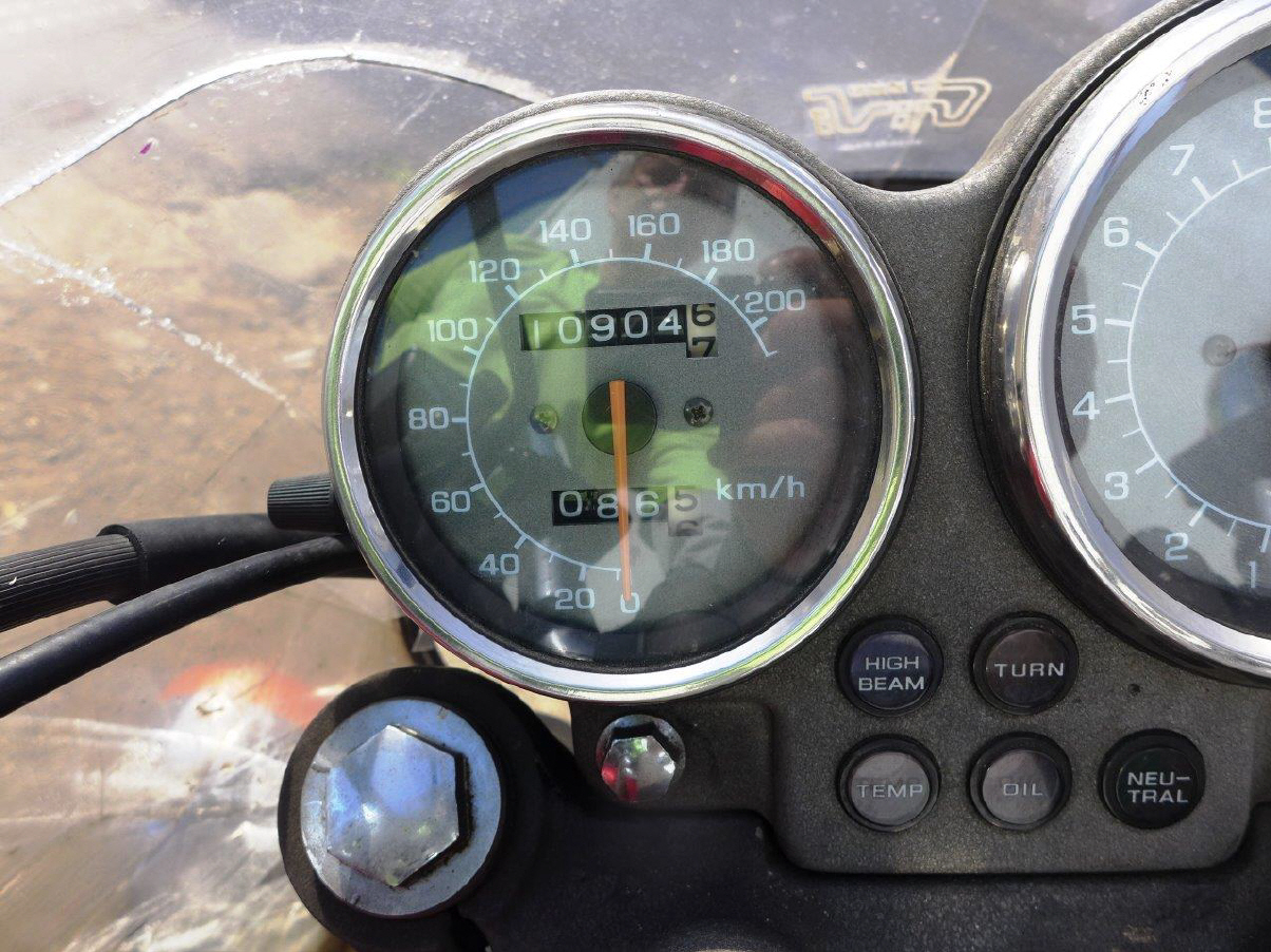 Ich parkierte die Maschine genau dort, wo es passiert war: Für mich und ihre Maschine ein emotionaler Abschied. Ich hatte, wie in meinem ersten Reisebericht geschildert, so viel Spass und Freude, ihr den Wunsch zu erfüllen. Aufgrund des Kilometerzählers war ihr nur eine Fahrstrecke dort unten von 36 Kilometern gegönnt, sie hatte eine einzige Fahrt unternommen – zu einer zweiten Fahrt kam es nicht mehr.