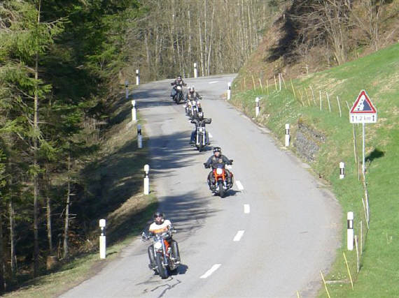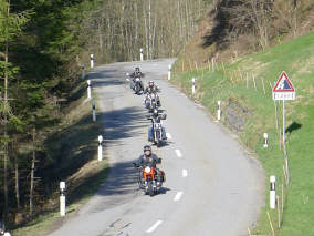 Motorradgruppe in der Linkskurve |