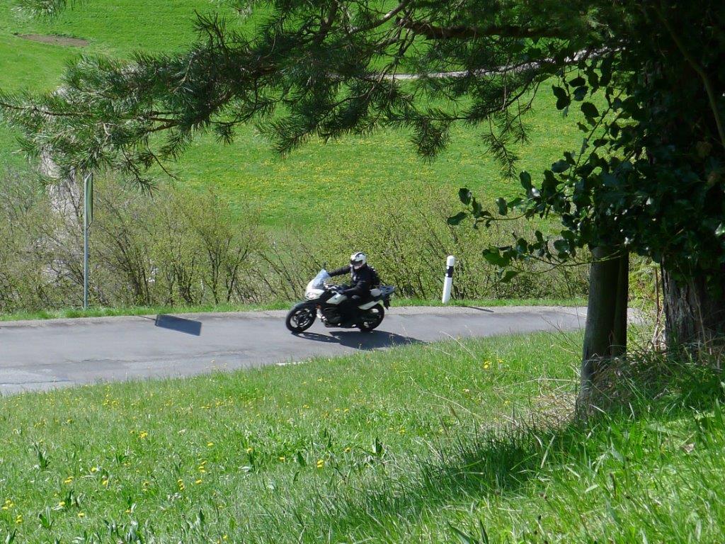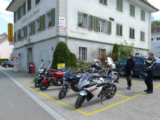 Nachdem wir uns in Bauma im Garten der Konditorei Volant zum Ende des ersten Kurventechnik-Kurses vom 29.April verabschiedet hatten, fuhren Frank und ich zu Honda-Keller, um die neue Africa Twin auszuprobieren. Eine erste fahrt führte mich mit der Normalversion auf die Hulftegg, danach konnten wir beide Version probefahren und wechselten sie unterwegs: Auf dem Weg über Juckern nach Sternenberg fuhr ich die Automat-Version, dann wechselte ich auf die Normalversion wieder zurück nach Bauma.