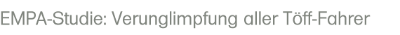 Im Gegensatz zu einer von der EU in Auftrag gegebenen Untersuchung konnte die Schweizer Studie nur ein Ziel verfolgen: Verunsicherung der Bevölkerung und Verunglimpfung der Töff- und ScooterfahrerInnen. Schliesslich prüfte das Empa Motorräder und Scooter der Jahrgänge 1993 - 1998 (heute schreiben wir das Jahr 2006!). Die Euro-Norm wurde 1999 überhaupt erst eingeführt, und die europaweit geltenden Abgasvorschriften (denen sich die Schweiz inzwischen angeschlossen hat) in mehreren Schritten drastisch verschärft (ab 2006/2007 gilt Euro 3).