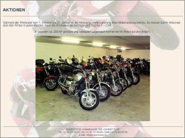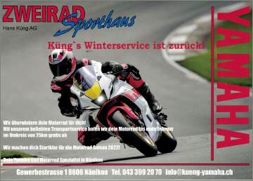Der Töff kann auch bei Deinem Töff-Händler eingestellt werden. Dann kann man auch gerade anstehende Wartungs- oder Erneuerungsarbeiten, Zubehör angebaut, usw. ohne Zeitdruck machen lassen. Je nach Händler kommt er dann preislich entgegen, indem das Fahrzeug gratis abgeholt oder wieder gebracht wird, ein Teil der Einstellgebühren erlassen oder ein günstiger Arbeitsstundentarif im Winter zur Anwendung kommt. |