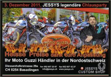 Jahre später, in einem Enduro-Kurs in der Ardèche, sprach mich eine Frau an: Es war zu lange, als dass ich sie noch gekannt hätte. Aber als sie mich auf die Transalp-Kette ansprach, war «der Link» geschafft: Natürlich, die Sabina! Neben ihr sass ein Typ mit langen Haaren, mit Bart und ziemlich «aufgewecktem» Gehabe: Unwiderruflich klar, ein Harleyfahrer! Dass er aber nicht nur Harley fährt, sondern auf allen Rädern schnell unterwegs ist, erlebte ich später, als er in der Supermotard- und Gelände-Szene jeweils wieder aufkreuzte: EIN SUPER-TYP, bescheiden - und eben ein richtiger Töffler, durch und durch. Wenn Du ihn kennen lernen willst, dann geh auf seine Homepage (mit einem Link aufs Bild rechts klicken) oder noch besser, schau mal in den Laden in Diessenhofen - Du wirst ihn auf den ersten Blick erkennen: JESSY! |