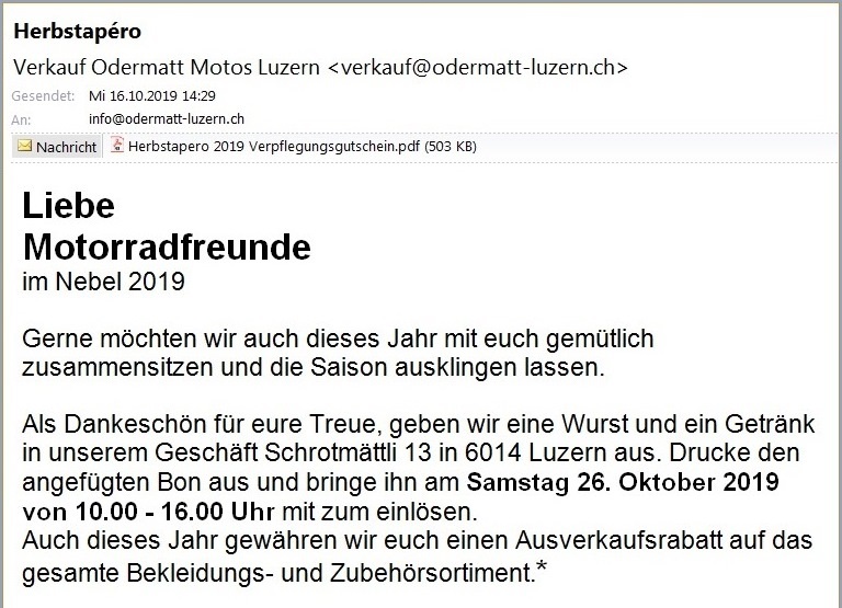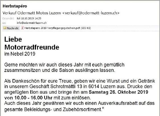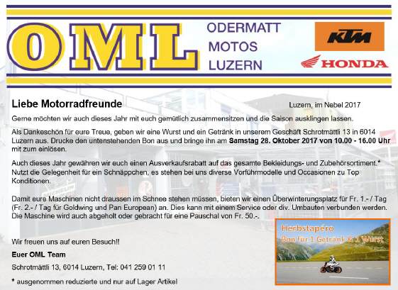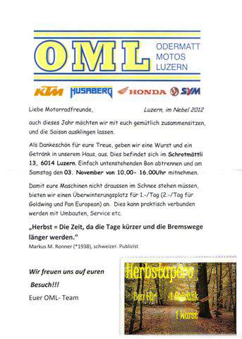 Odermatt-Motos Luzern lädt am 3.Nov. 2012 ein |