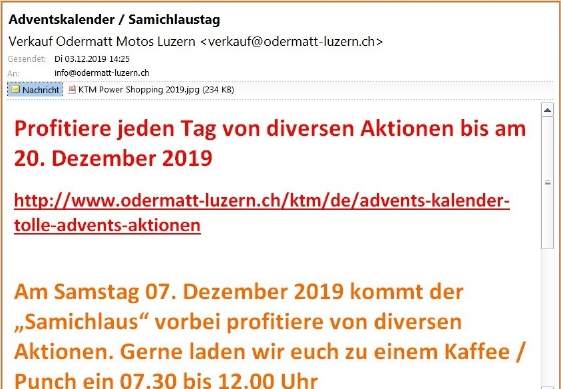 Nicht vergessen am Samstag 05.Dezember 2015 ist bei uns der Nikolaustag. Profitiert von den verschiedenen Rabatten.