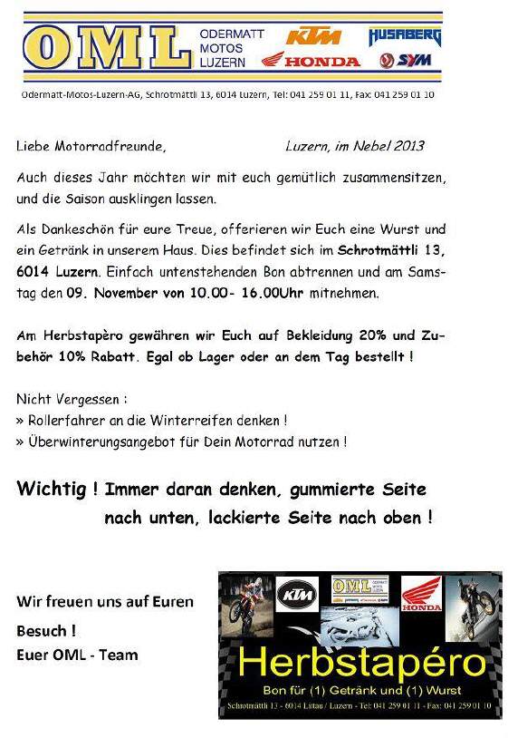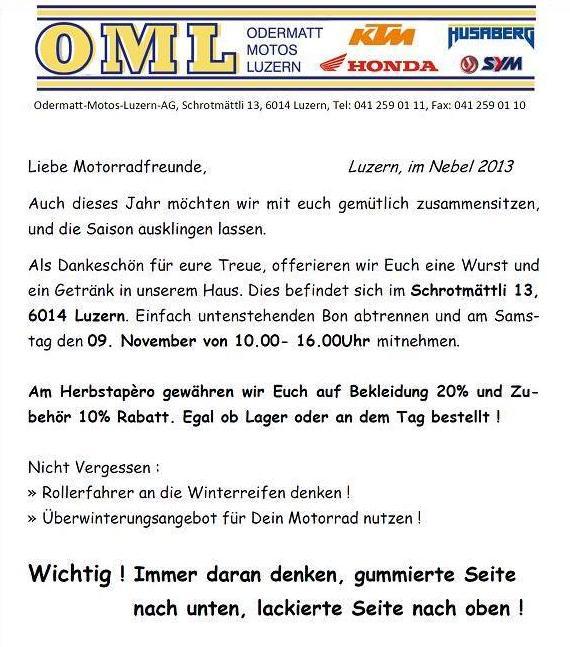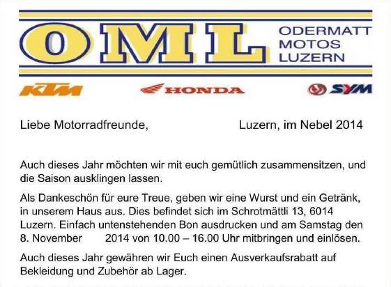 Odermatt-Motos Luzern lädt am 9.Nov. 2013 ein |