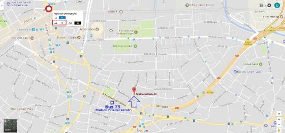 Anfahrt über Zentrum Oerlikon: Schwamendingerstrasse stadtauswärts bis Höhe Bushaltestelle Friedackerstr., dort links abbiegen in Friedackerstr., bergab rechts abb. in Magdalenenstrasse, bei nächster Querstrasse links abb. in Apfelbaumstrasse. Mein Geschäft liegt danach rechts, an der Ecke Apfelbaumstrasse/Funkackerstr.