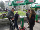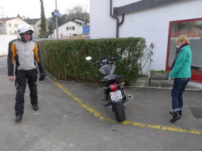 |  | Da Arthur nicht mehr der Allerjüngste ist, seine dicke BMW aber keinen Rückwärtsgang hat (wie etwa eine GoldWing) nimmt er die spontane Hilfe gerne in Kauf, wenn es ums Einparken geht. (Hier auf der Ausfahrt vom 26.Juni 2008 zur Alp Scheidegg ob Wald ZH)