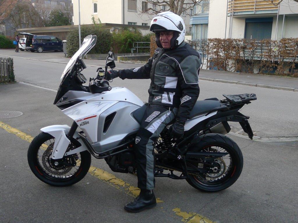 | Seit April 2016 ist Arthur (74) mit der KTM 1290 Adventure unterwegs und rundum zufrieden. Bis jetzt hat er 16'000 km (Stand März 2016) zurückgelegt. Es gab noch keine ausserplanmässigen Stops! |