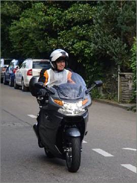 | Arthur kaufte die Maschine spottbillig von einer Frau, die nur wenige Kilometer damit gefahren ist. Jetzt fährt er damit herum und hat einen riesigen Spass an der so sanft (wie er sagt) selbst schaltenden Maschine. Genial - von Honda, versteht sich! Nur ich warte immer noch auf die automatische GoldWing... Das Bild stammt vom 27.Februar 2016.