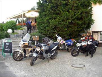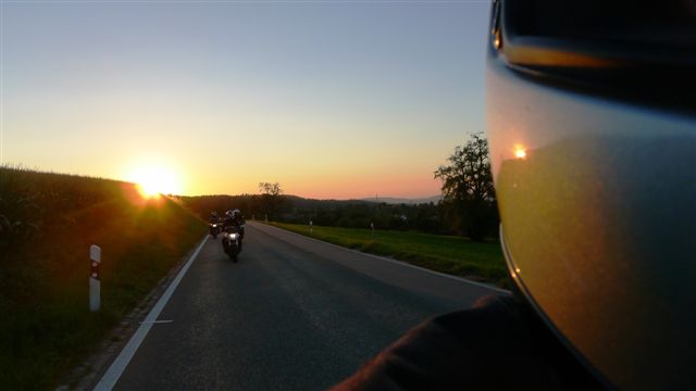 Da das Wetter es ununterbrochen gut meint mit uns Töff-Fahrern, habe ich noch einmal ein grosses Rundmail an alle DO-Ausfahrtsteilnehmer sowie an alle Fahrschüler gesandt. Woran es lag, dass schliesslich nur 11 Maschinen den Weg fanden, entzieht sich meiner Kenntnis. So startete die erste Gruppe unter der Führung von Arthur, während die zweite Gruppe mir hinterher fuhr. Da es keine L-Fahrer in meiner Gruppe hatte, gingen wir direkt auf die Autobahn, dann über die Kyburg nach Elsau-Räterschen. Die Strecke von Seuzach nach Thalheim war nicht besonders interessant, etwas interessanter wurde es dann ab Gütighausen, nach Oberneunform und Stammheim. Schlussendlich landeten wir über Nussbaumen in Eschenz, wo wir im Eindunkeln noch die letzten Kilometer nach Steckborn fuhren. Der Empfang im Rest. Lido war super, sie hatten uns zwei Tische vorbereitet und die erste Gruppe erhielt gerade das Essen, als wir am Bestellen waren. Die Küche aber arbeitete zügig und kurz darauf hatten auch wir unser feines Essen auf dem Tisch. Besonders war, dass wir «Möhl alkoholfrei» im Offenausschank erhielten! Das, womit wir anstossen, ist also kein Bier ...