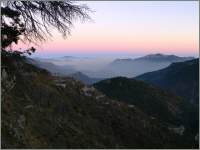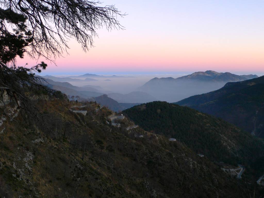 Im Vordergrund die vielen Serpentinen der «in den Hang geklebten» Passstrasse im Hinterland von Monaco