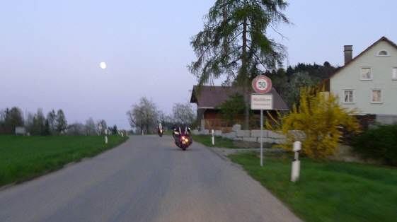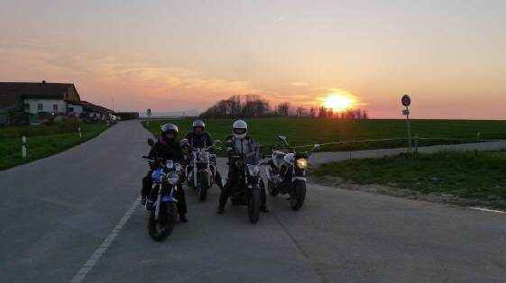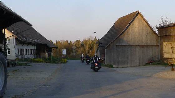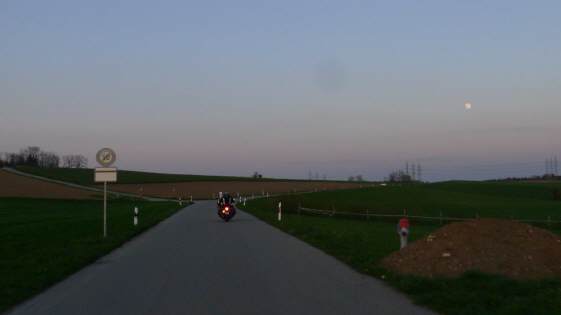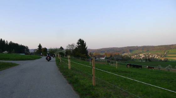 Arthur führte uns erst nach Glattbrugg, über den alten Dorfkern von Opfikon nach Kloten, dann in den Gerlisberg, über Bänikon, Lufikon und Egetswil nach Oberrüti. Über Moosbrunnen, Baltsberg erreichten wir schliesslich Embrach. Dort befuhren wir die Kiesstrasse, am Warpel vorbei nach Untermettmenstetten, dann befuhren wir x-kleine Strässchen, landeten wir in Obermettmenstetten und dann kam es zum Sonnenuntergangsbild bei Oberwagenburg. Da wir noch nicht fahr-müde waren, ging es weiter nach Sunnenbüel, übers Rumstal nach Pfungen und wieder an Untermettmenstetten vorbei zurück nach Oberembrach und von dort weiter schliesslich nach Oberwil in die Linde. |
