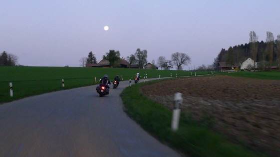 Um 19 Uhr werden wir starten - wir werden aufgrund der vorhandenen Teilnehmer und Tourguides je nachdem in einer oder in mehreren Gruppen an der Tramstrasse 109 starten. Diese Ausfahrt dauert eine knappe Stunde, da es schon kurz nach 20 Uhr dunkel ist. Die Rückfahrt nach Zürich dauert 20-30 Minuten.