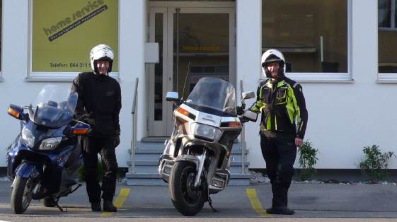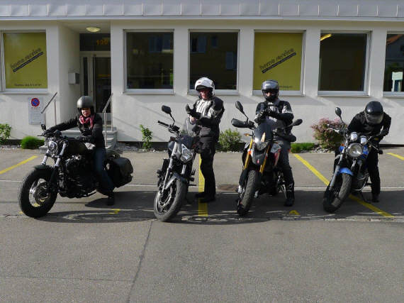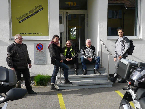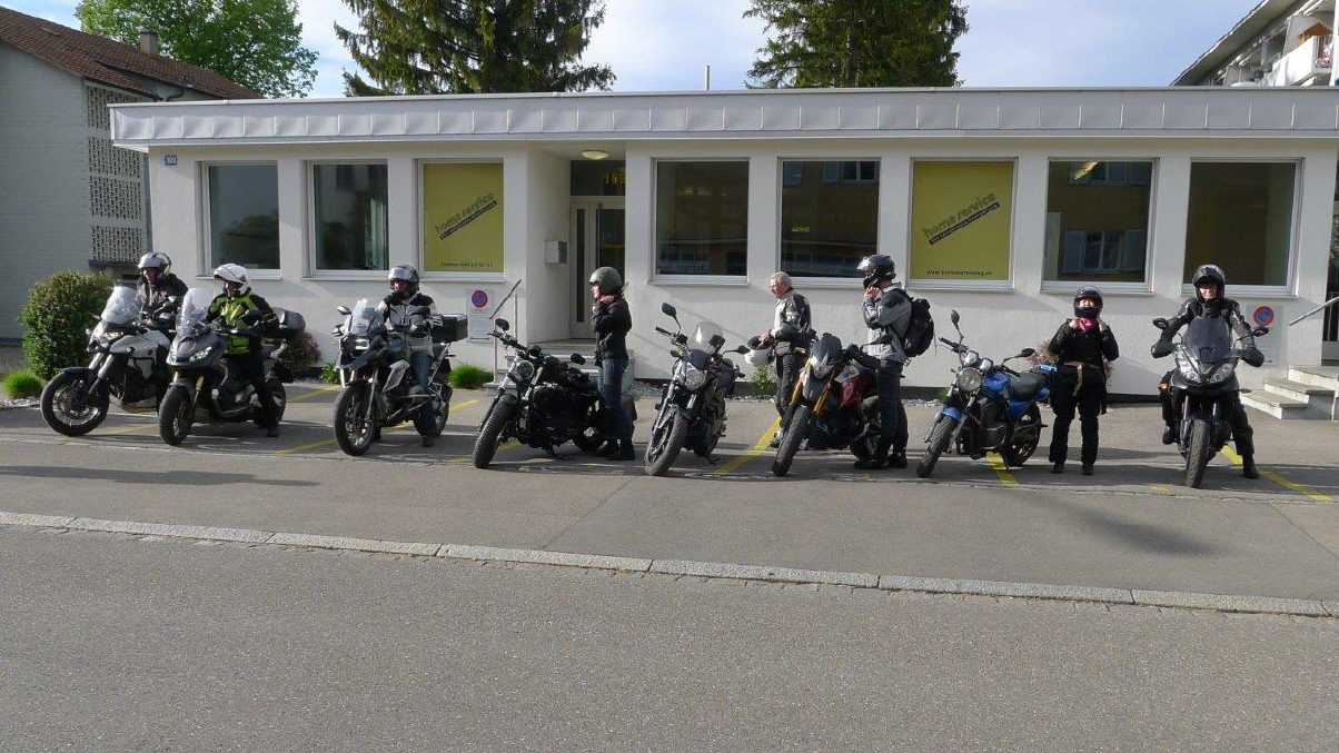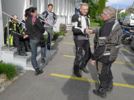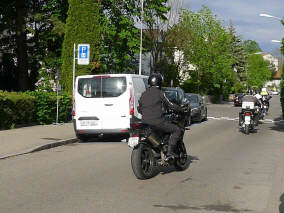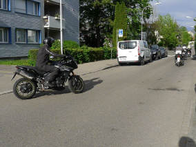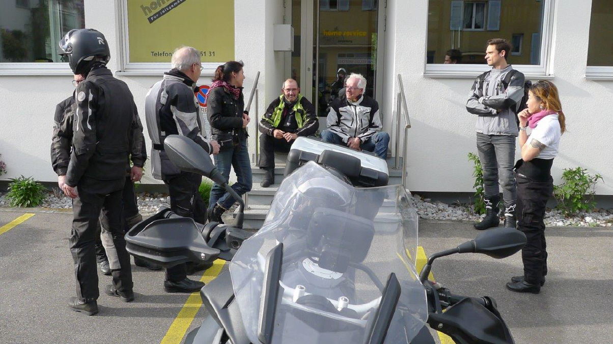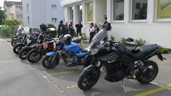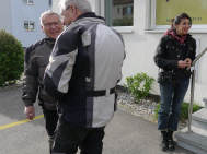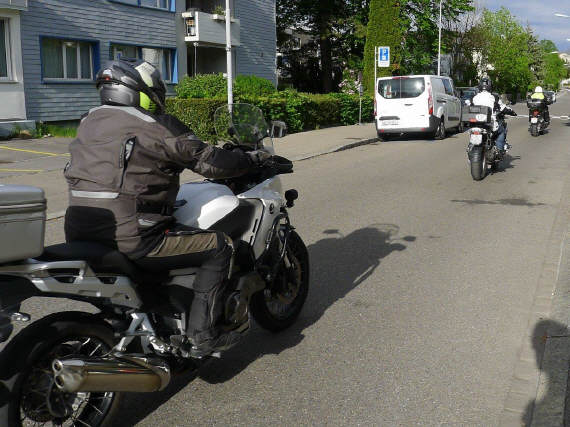 Aufgrund des tollen Sommerwetters (Föhn mit Temperaturen um die 23 Grad über mehrere Tage) beschlossen wir die erste Spezial-DO-Ausfahrt in der neuen Saison auszuschreiben. Neben Arthur stand Alain als zweiter Tourguide zur Verfügung. Um Viertel vor 18 Uhr machte ich mich auf den Weg, um die Abfahrenden zu fotografieren. Mein Job war der Start um 19 Uhr. Es waren schon recht viele anwesend und fast als letzter traf Arthur ein. Nur Roland, der sich kurzentschlossen ebenfalls auf den Weg gemacht hatte, kam noch knäpper. Schliesslich formierten wir 2 Gruppen: Arthur übernahm die gemütlichen FahrerInnen, auch 2 FahrschülerInnen waren dabei. Alain fuhr als erster los, ihm folgten die Routiniers. Danach startete Arthur. |