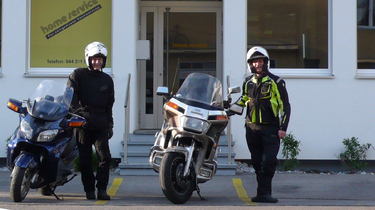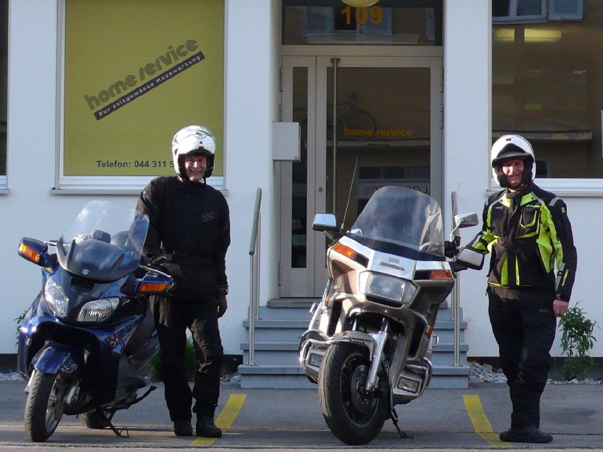 Als ich kurz vor 19 Uhr an die Tramstrasse 109 fuhr, war der ganze Platz leer: Sollte ich wohl die heutige Ausfahrt ganz alleine bestreiten? Doch da sah ich von Ferne einen grossen Roller heranfahren, Beat, ein treuer Ausfahrer fast über Jahrzehnte hinweg. Er wohnt in der Forch und so war er derjenige, der heute Abend die kürzeste Heimfahrt geniessen dürfte. Wir hatten das Ziel, um 20.15 Uhr da zu sein, und so nahm ich die Kurven am Pfannenstiel in Angriff. Nach Gockhausen ging es nach Pfaffhausen, über Ebmatingen, Stuhlen und Maur. |