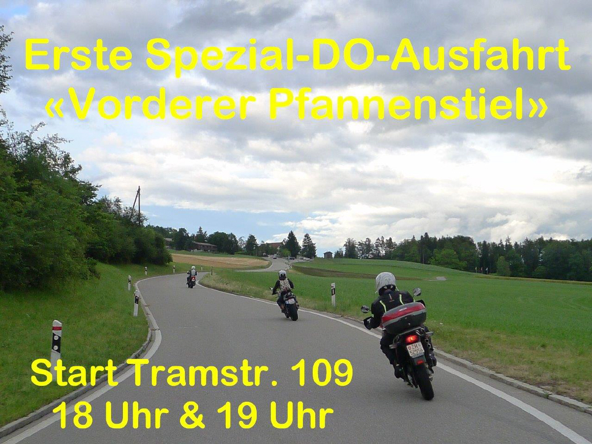 Nun lade ich zur dritten DO-Ausfahrt in diesem Jahr ein. Aufgrund des tollen Wetters laden wir zur ersten SPEZIAL-DO-Ausfahrt mit zwei Abfahrtszeiten ein! Arthur startete an der Tramstr. 109 bereits um 18 Uhr, ich übernehme die Gruppe um 19 Uhr! Wir starten auf eine Tour um und auf den Pfannenstiel, mit dem Ziel Restaurant «Vorderer Pfannenstiel». |