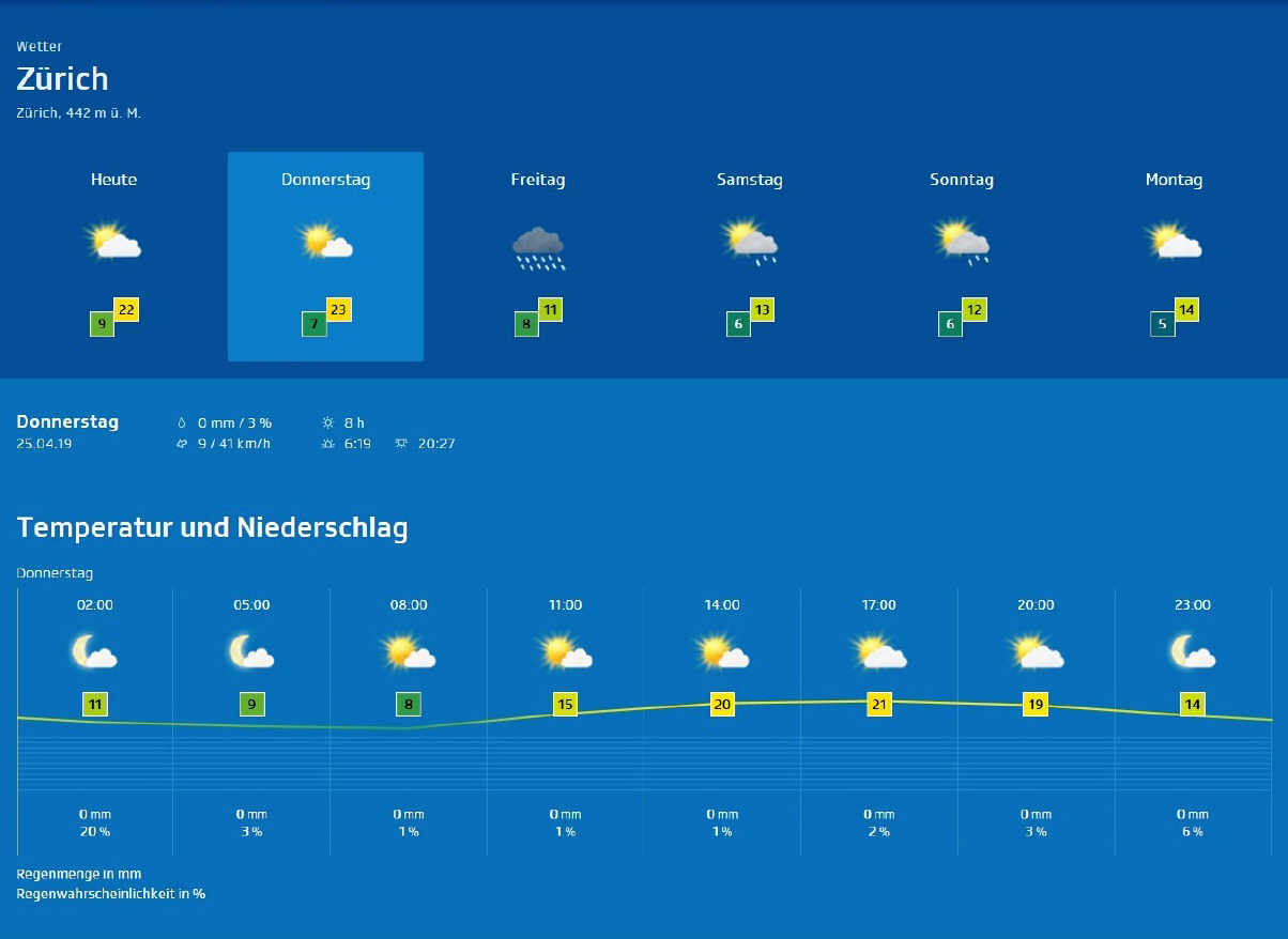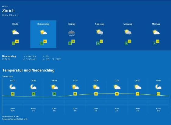 Züri-Wätter-Details für Donnerstag, 25.Apr. 2019 |