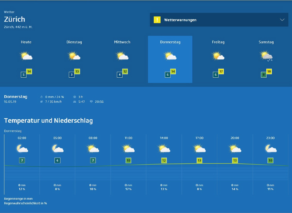 Züri-Wätter-Details für Donnerstag, 16.Mai 2019 |