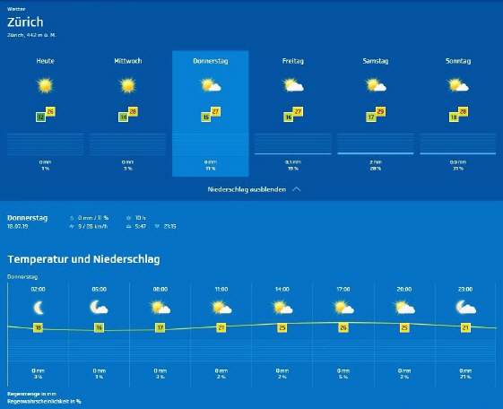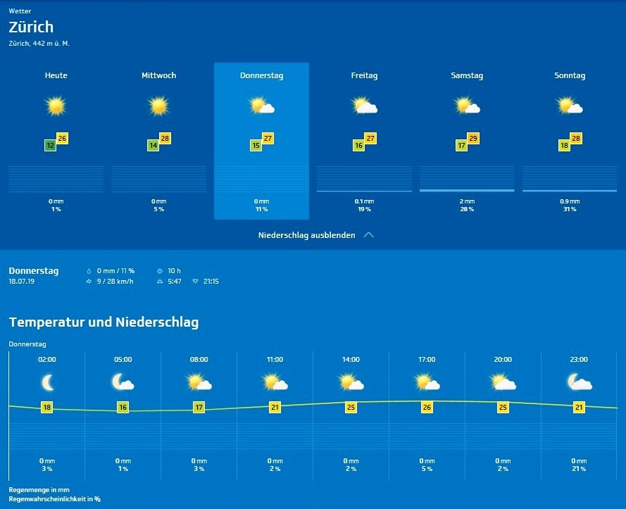 Züri-Wätter-Details für Donnerstag, 18.Juli 2019 |