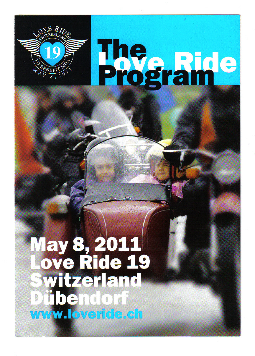 Der jeweils am ersten Sonntag im Mai stattfindende (ausser 2005) Love Ride Switzerland ist eine Benefizveranstaltung zu Gunsten muskelkranker und behinderter Menschen. Der erzielte Erlös aus der Veranstaltung, sei es aus dem Ticket- und Souvenirverkauf oder durch die Essens- und Getränkeabgabe usw., kommt vollumfänglich den muskelkranken und behinderten Menschen zugute. Dies ist nur dank den ehrenamtlich tätigen Helferinnen und Helfern am Veranstaltungswochenende und mit der grosszügigen Unterstützung von zahlreichen Sponsoren möglich.