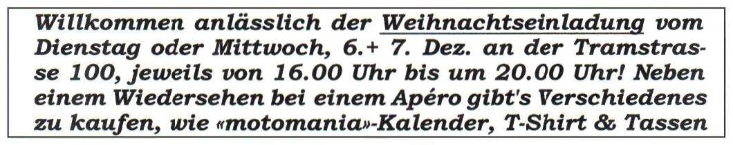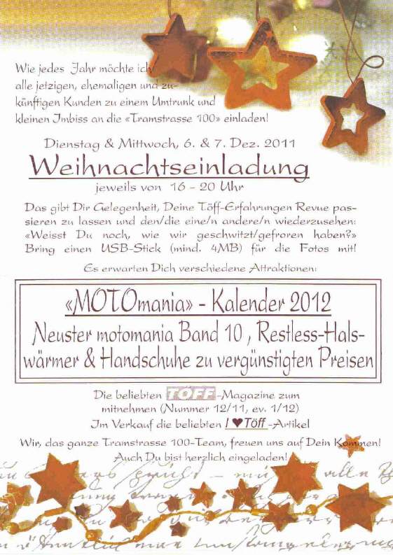 Liebe Töff-Fahrerin, lieber Töff-Fahrer Liebe «Tramstr.100»-Ehemalige, Fans & Freunde |