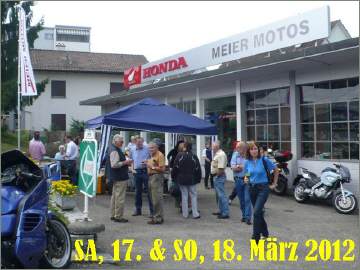 Landauf, landab organisieren verschiedene Töff-Händler für ihre bestehenden, aber auch für neue Kunden sogenannte Frühlingsausstellungen: Es wäre schön, wenn Du Dir die Zeit nehmen würdest,auch beim einen oder anderen hineinzuschauen. Bei den HONDA-Händlern findest Du die neusten Modelle der Mittelklasse, die im vergangenen Herbst in Mailand vorgestellt wurden, sowie die lange angekündigte «Crosstourer», der neuen grossen Reise-Enduro mit dem tollen VFR1200-Motor, wahlweise konventionell oder mit der Doppelkupplungs-Automatik (sequentielle Schaltung), dem ersten richtigen Automatik-Getriebe auf einem Motorrad! Damit will Honda der verkaufsstarken BMW R1200 GS Paroli bieten – eine Probefahrt auf dieser tollen Maschine ist ein MUSS!!! Ich selbst werde an diesem Sonntag bei Michi Meier (Meier Motos, Honda und BMW) an der Winterthurerstr. 309 in meiner Nachbarschaft anwesend sein – bitte achte die Einladung!