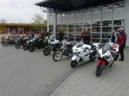 Am Samstag, dem 14.April trafen sich 7 Kursteilnehmer für den Kurventechnik-Kurs 2 im Rest. Hörnli in Knonau. 6 trafen rechtzeitig ein, der 7.Teilnehmer, der extra aus Paris (!) angereist war, meldete sich kurz nach 8 Uhr. Auf dem Weg nach Knonau war er verunglückt, ein paar Kilometer vor dem Treffpunkt. Zum Glück hatte er sich selbst nicht weh getan, so dass ich mich für den Abtransport seiner zerstörten Maschine und um ein Ersatzmotorrad kümmern musste. So konnte er den ganzen Kurs trotz dem Malheur auf der Anfahrt mitmachen und gar erst noch geniessen: Auf der 100er-Kawa hatte er offenbar Spass und das Geschehene bestimmt besser verarbeiten. Wie heisst es so schön: Wenn einer vom Ross fällt, soll man ihn gleich wieder draufsetzen … .