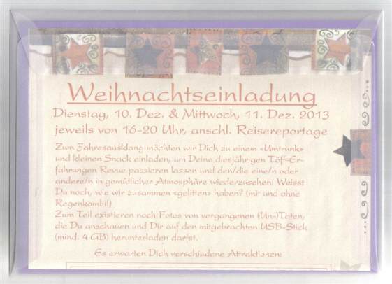 Weihnachtseinladung 10./11.Dez. 16-20 Uhr anschl. Reise-Reportage Schweiz-Peking mit Walter Gerig.