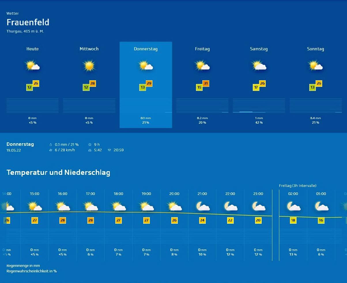 Für den letzten Besuch in diesem von uns doch geliebten Ausflugslokal mit einem wunderbaren Garten musste ich tief in der Vergangenheit kramen: Unglaublich, er war 2018, auch im Mai, es war damals Donnerstag, der 24.Mai. Der letzte Besuch ist reich bebildert! Das Haus liegt unterhalb des Hausberges von Frauenfeld, wo es auch einen Aussichtsturm gibt, nur ein paar Gehminuten oberhalb des Restaurants (ist ausgeschildert) |