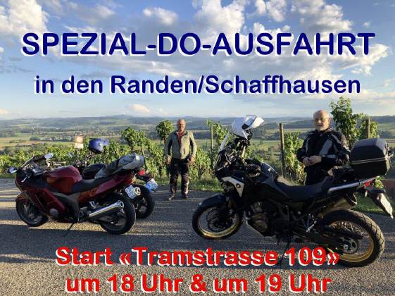 Auch wenn es nicht ganz ausgeschlossen ist, dass es am kommenden Donnerstag regnen wird: Mit den glücklichen Erfahrungen der letzten beiden Donnerstage wagen wir einmal mehr eine SPEZIAL-DO-Ausfahrt! Wer es sich einrichten kann, sollte sich unbedingt bereits um 18 Uhr zum Start begeben. Es erwartet Dich eine schön lange Tour, die Dich in den Norden des Kantons Schaffhausen bringen wird. |