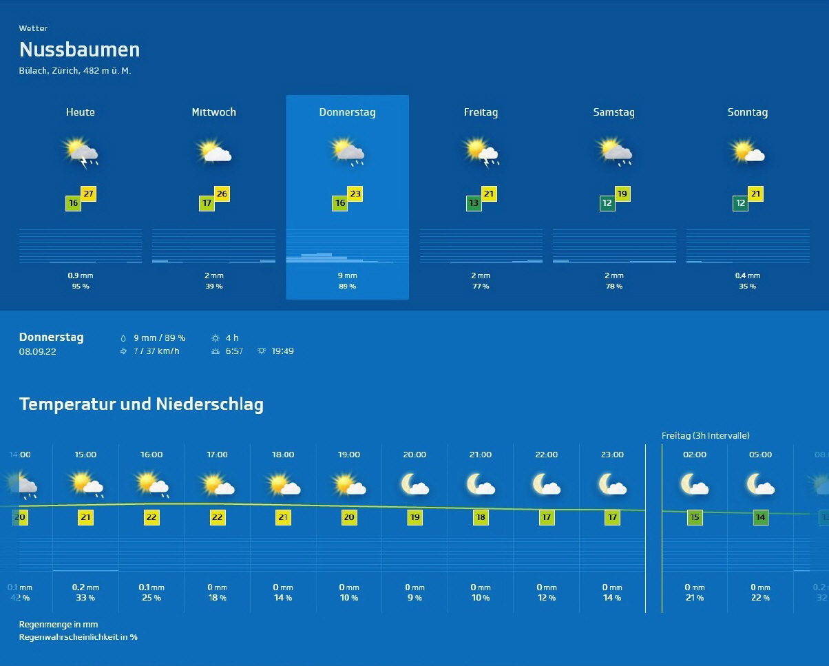 Diesen Donnerstag sind Wetteraussichten nicht eindeutig: Zwar sagen die Wetterprognosen, dass es im Laufe des Nachmittags abtrocknen sollte, doch die Frage ist, ob sich das Wetter an die Prognosen hält - in der Beziehung ist das Wetter nicht immer so zuverlässig! Auf alle Fälle, wohl auch weil es das viertletzte Mal sein wird, wiederum einen Start sowohl um 18 wie auch um 19 Uhr. Da es schon früh eindunkelt, planen wir allerspätestens um 20.30 Uhr am Ziel zu sein. |