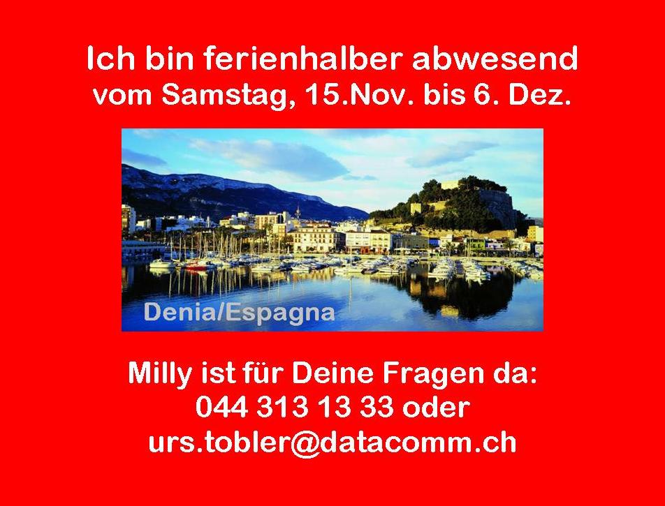 Abwesend vom SA, 15.Nov. bis SA, 6.Dez. 2014 |