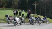 Traditionell starteten wir in der Luegeten ob Pfäffikon SZ, dann ging es dem Hang entlang fernab aller normalen Routen nach Reichenburg, wo sich die Routen teilten: Die Routinierten bekamen ihren ersten Eindruck in Niederurnen, wo ihnen die Felswand gezeigt wurde, die sie bald von oben bestaunen sollten. Die weniger routinierten Fahrerinnen und Fahrer machten Halt in der Linthebene, bevor sie sich auf derselben Bergstrasse in Näfels den Berg hoch schraubten zum Apéroplatz, auf dem Weg zum weniger bekannten Obersee. Dort wartete mein Weiterbildungskursinstruktor Roland zusammen mit Manu und der kleinen Tochter Amy mit einem fein hergerichteten Apéro-Tisch. Inzwischen waren die Gruppen von Urs und Dominik tatsächlich an dem beeindruckenden Aussichtspunkt oberhalb der «Mariawand» gewesen.