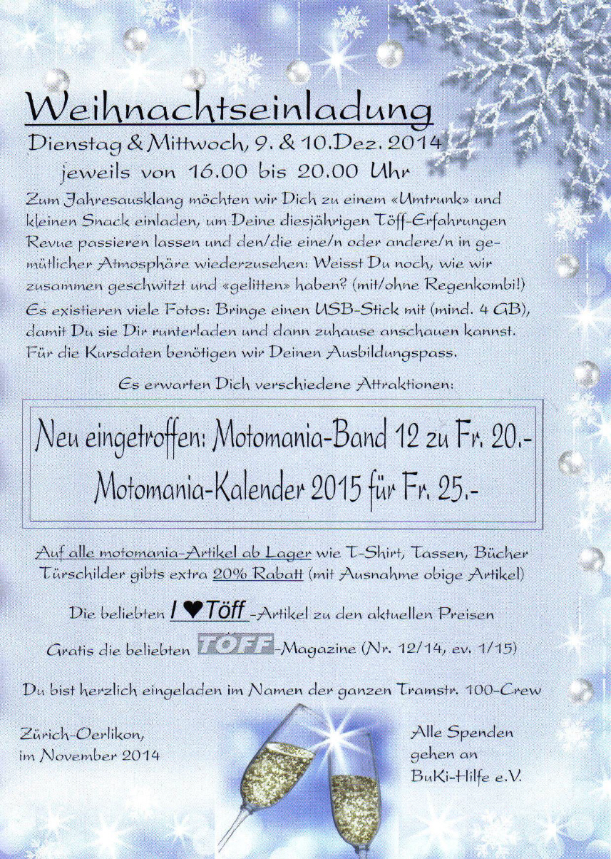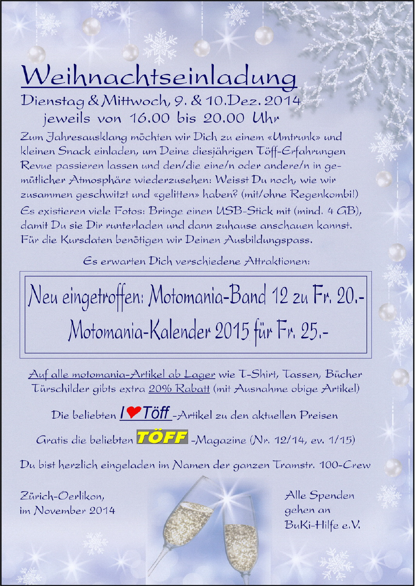 Liebe Töff-(Lern-)Fahrerin, liebe Töff-(Lern-)Fahrer Liebe «Tramstr.100»-Ehemalige, Fans & Freunde |