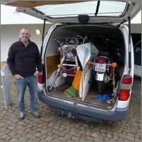 (Fast) Pünktlich um 9 Uhr stand ich im Geschäft, wo mich Roli bereits erwartete: Er hatte mir seine Hilfe zugesagt, da er schon beim Einpacken der Post helfen wollte, aber nicht zu unseren Zeiten konnte. Da ich meinen Stand immer in derselben Art aufstelle, das Material bereits alles da war - abgesehen, von den falschen Kabelbindern, die ich gekauft hatte - und so stand das Zelt grösstenteils mit den Lichtern verkabelt bereits vor dem Mittagessen. Mein Auto stand in der blauen Zone und so war ich gezwungen, die Zeiten einzuhalten. Nach dem Mittag holten wir noch die letzten Dinge - z.B. die richtigen Kabelbinder - im Coop-Baucenter in Dübendorf. Und so kam es, dass wir, wieder wegen dem Auto aus der blauen Zone nehmen, sogar bereits den Bildschirm holten und auch sonst praktisch alles fertig hatten bis am Abend um 6 Uhr. Was für eine Glanzleistung, Roli ich bedanke mich bei Dir für Deine grosse Hilfe! |