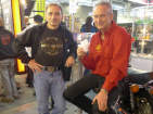 Seit letztem Jahr ist Bruno Schilling. mit seiner Tochter Maja auf dem Bild, ebenfalls in Pension gegangen - d.h. er hat seinen Betrieb jeweils an den Wochenenden geschlossen, wo er irgendwo in Europa an ein Harley-Event unterwegs ist. Denn das Schrauben an den alten Maschinen kann er - die Kundschaft dankts - sowieso nicht lassen. Auch er hatte das Glück, dass er sein Hobby mit dem Beruf zusammen legen konnte - und wie ich, hat er dabei trotzdem nicht das Hobby verloren! Bruno ist jeweils die Anlaufstelle für meinen (ungebremsten) Einrad-Anhänger, den er mir angebaut und durch das Strassenverkehrsamt gebracht hat. Inzwischen haben sie die Kontrolle abgeschafft, denn ausser dem Radlager und der Beleuchtung konnten sie sowieso nichts kontrollieren ...