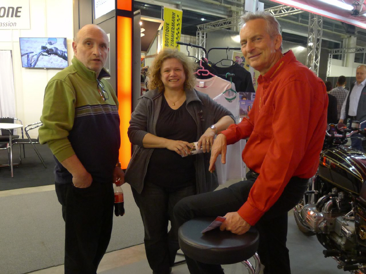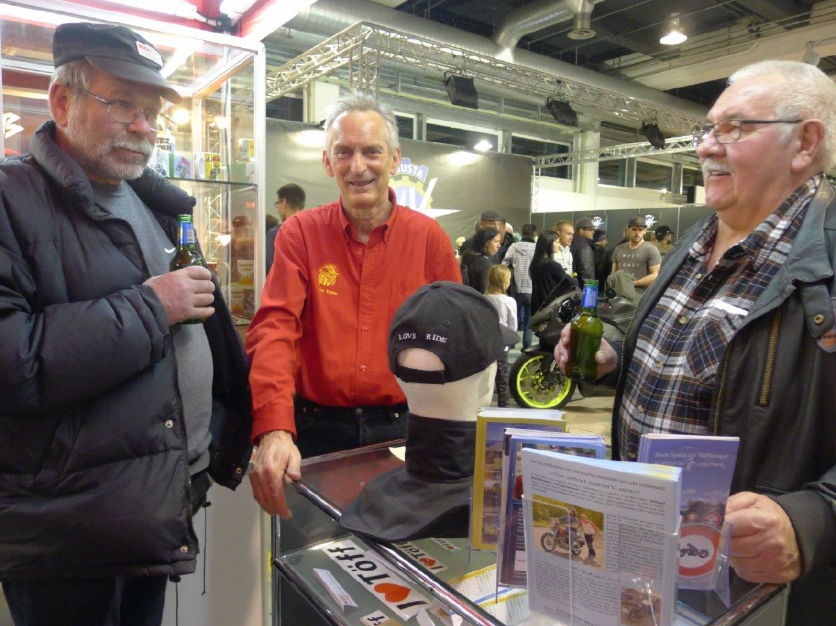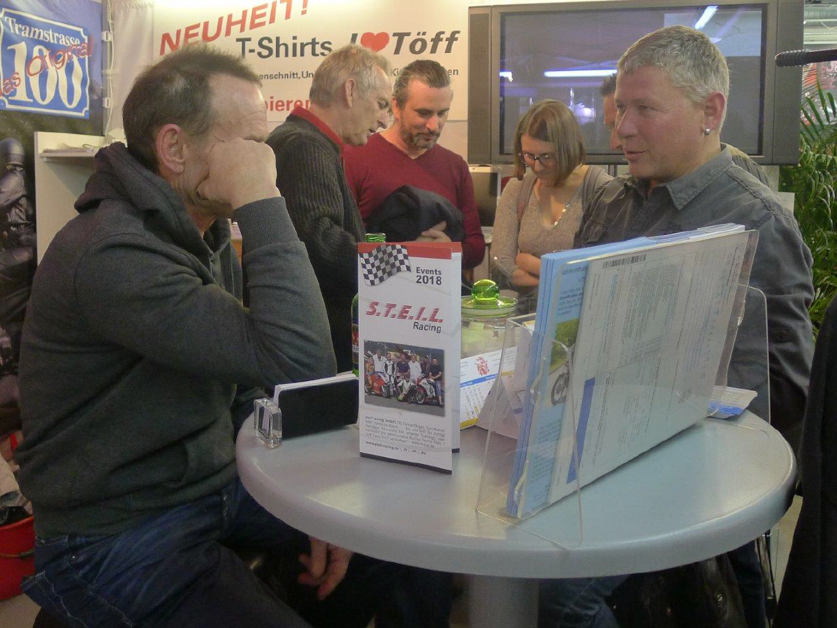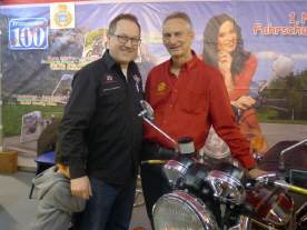 Alle Jahre wieder, kommt der ex-Präsident des Töff-Fahrlehrer-Verbandes Fred Eichenberger an meinen Stand. Während vieler Jahre hatten wir Engagements anlässlich der 2Rad und späteren Swiss-Moto, wo ich jeweils als verlängerten Arm für den Verband in Zürich auf der Matte stand. Inzwischen ist Fred schon über 70, aber betreut immer noch das Sekretariat, bzw. das Telefon des Töff-Fahrlehrer-Verbandes. Meistens ist er unterwegs mit seinem Nachfolger Jürg Stalder.