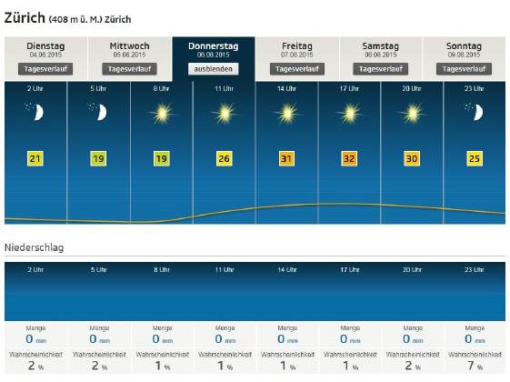 Detail-Aussichten ZH für Donnerstag, 6.Aug. 2015 |