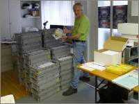 Obwohl ich in diesem Frühjahr viel früher dran war, wurde es am Schluss doch noch ein Wettlauf gegen die Zeit: Meinem (zugegeben kurzfristigen) Aufruf folgte eigentlich nur Urs: Er ist immer da, wenn man ihn braucht. Diesmal hatte es Karin erwischt mit «krank» ... Stopp, da war noch Adam, der mir die Füllstrassen half einrichten, bevor es überhaupt losging. So blieb fast alles an Milly und mir hängen: Eine neue Fahrschülerin, die wohl unsere Situation erkannte, kam mit ihrem Freund und sie halfen am Samstag auch 2x 2 1/2 Stunden. Die Briefe gingen am Montag um 16.30 Uhr per B langsam weg, die Post lässt sich 5-6 (Arbeits)Tage Zeit. Sie dürften also frühestens Ende der Woche, wohl eher anfangs der nächsten Woche bei den Kunden eintreffen. |