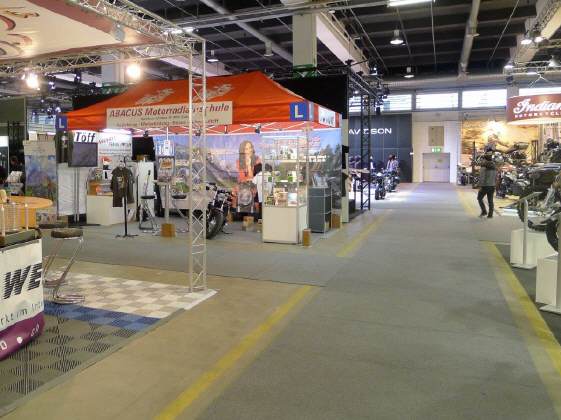 Auch in diesem Jahr werde ich wieder einen eigenen Stand haben: Da die Halle 3 neu aufgeteilt werden musste (Ofrag mit den Marken Piaggio, Aprilia hat neu auch noch Moto Guzzi im Angebot), musste ich weichen. Ich denke aber, dass der neue Standort in der Halle 2 für mich ein guter Platz sein wird, auch wenn die Umgebung mit den Marken Triumph, Indian und Harley im Rücken etwas seltsam ist für meine Fahrschule: All diese Maschinen, mit Ausnahme weniger Triumph-Modelle, sind eher etwas für Könner denn für Anfänger! ;-) |