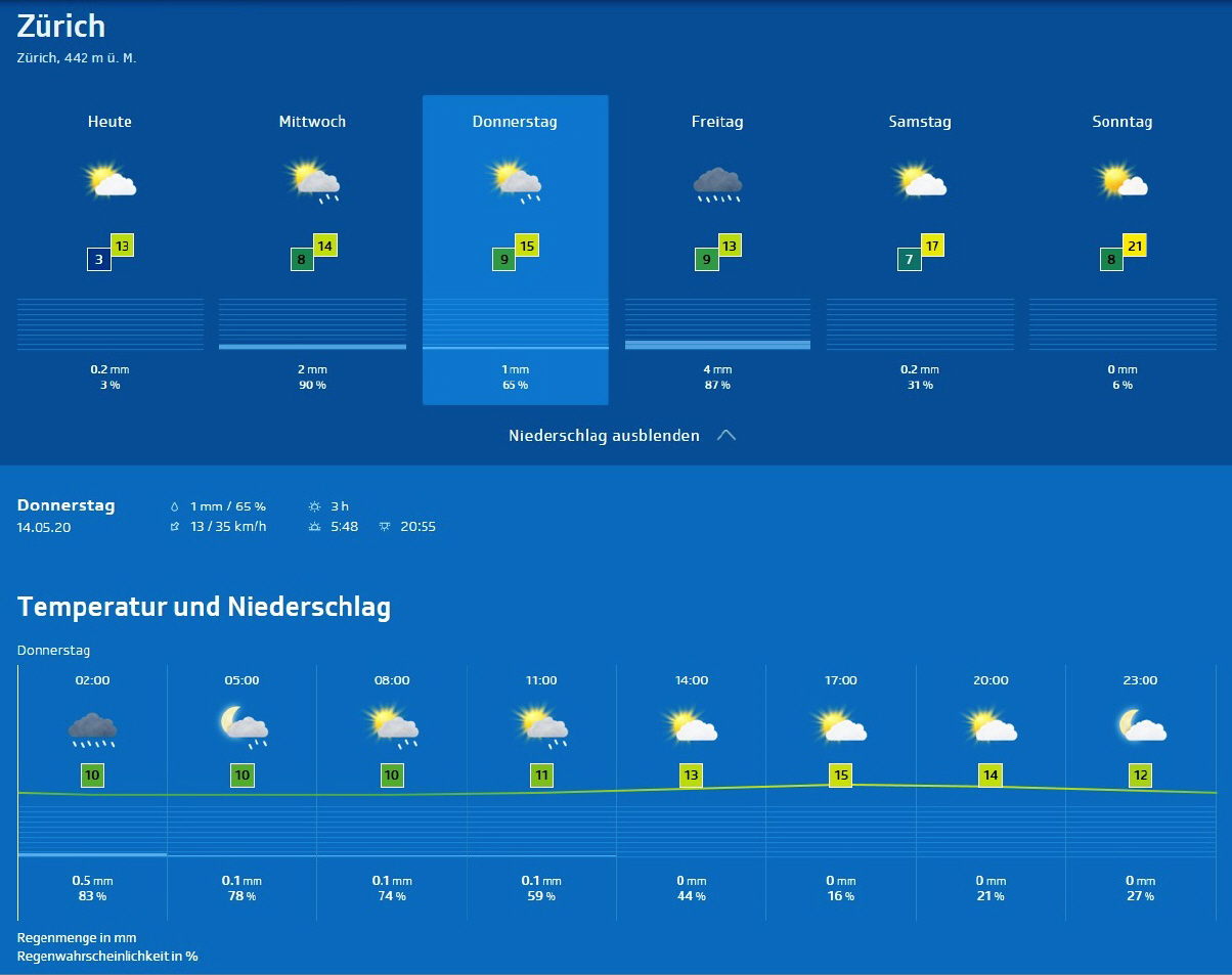 Züri-Wätter-Details für Donnerstag, 14.Mai 2020 |
