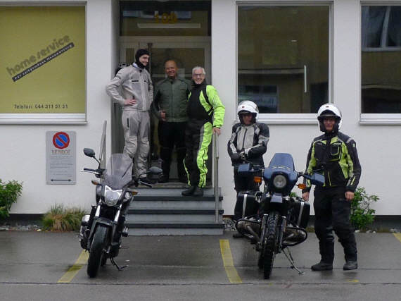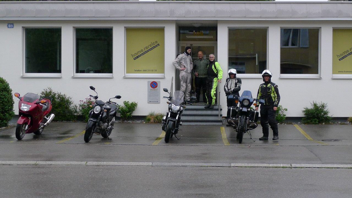 Wie von Arthur beim letzten Mal vorausgesagt, waren die Verhältnisse bedeutend schlechter als vorausgesagt: Schon um 18.00 Uhr regnete es und nicht viel besser war es um 19.00 Uhr: So trafen nur gerade mit mir gerechnet 3 Tourguides und 2 TN (davon ein L-Fahrer) ein. Kurz nach dem Start im Regen klinkte sich Arthur aus und machte sich zuhause einen gemütlichen Abend (... nehme ich an!), während wir uns über Bassersdorf ins Gebiet bis und mit Pfungen aufmachten. Da Gregor im Sommeranzug gestartet war, ohne Regenzeug, verabschiedete er sich in der Nähe von Winterthur, durchnässt bis auf die Unterwäsche. |