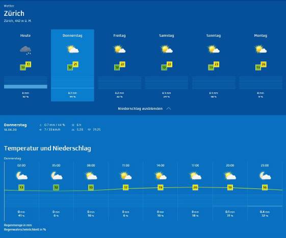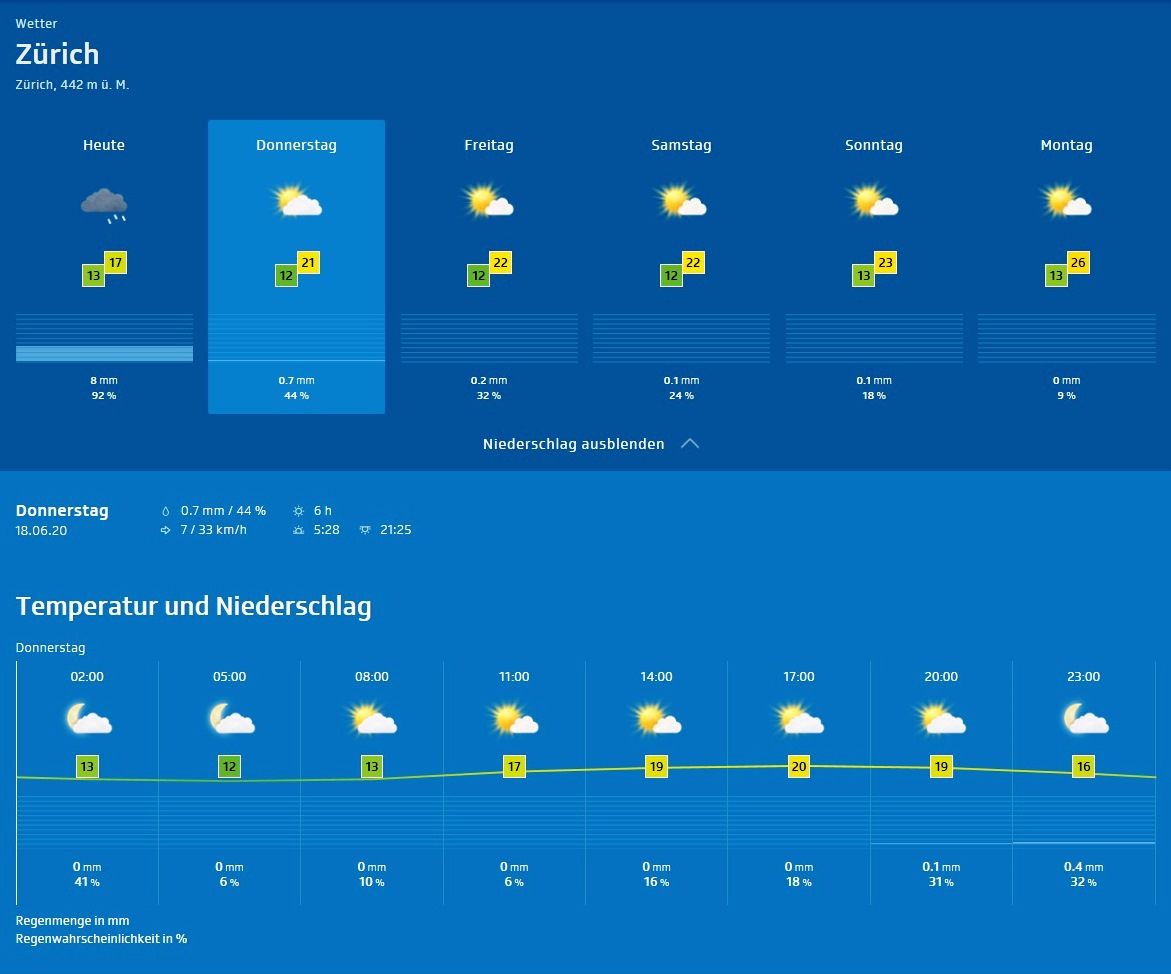Züri-Wätter-Details für Donnerstag, 18.Juni 2020 |