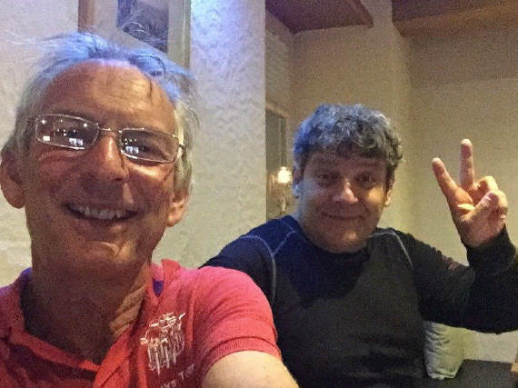 Die übrige Truppe sass an einem (reservierten) Tisch, Claudio und ich sassen separat an einen 2er-Tisch. Das «Bergli» hat richtig Stil, mit weissem Tischtuch, aufgedeckt - so richtig gastlich. Der Küche zuliebe nahmen wir ein Einheitsmenü, Pasta mit Eierschwämmchen, ein echt leckeres Gericht. Den gemischten Salat - ebenfalls sehr fein - hätte ich wohl besser weggelassen oder dann zumindest eine halbe Portion des Hauptgangs genommen, denn die anschliessende Nacht litt ich wieder fürchterlich an Überfressenheit und das Frühstück am nächsten Morgen konnte ich gleich ganz weg lassen: Nichts gelernt offenbar, siehe hier